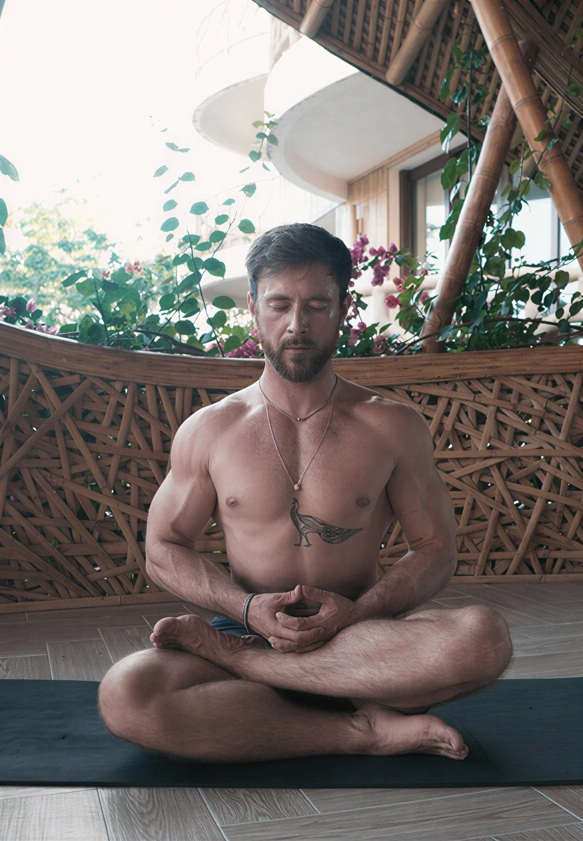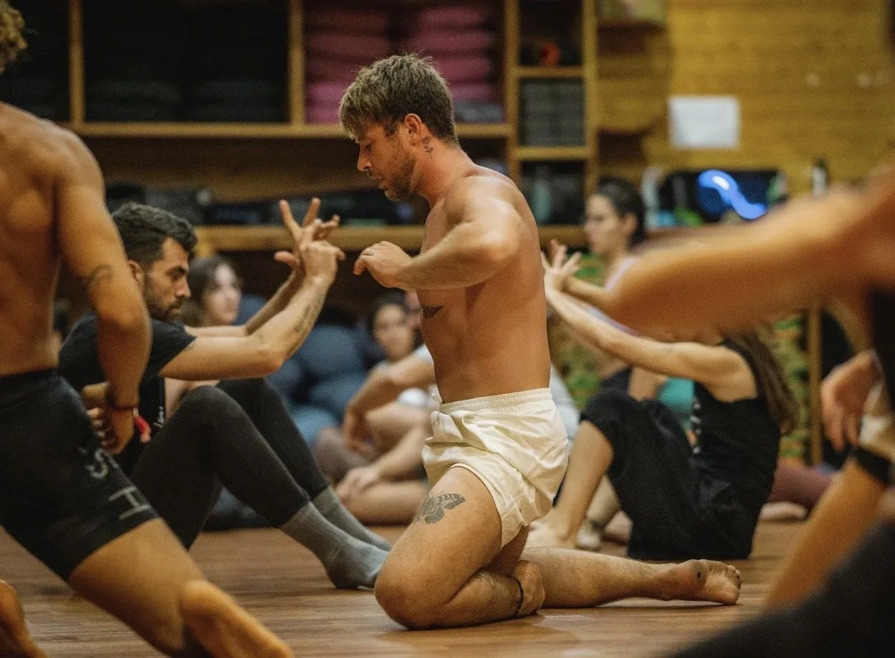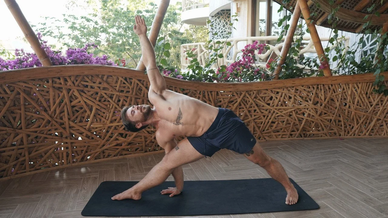 A former athlete, his path deepened after a hockey injury led him into yoga and movement-based healing.